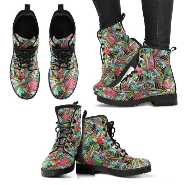 Funky Patterns In Greens – Leather Boots Fashion Boots Custom Shoes For Women
